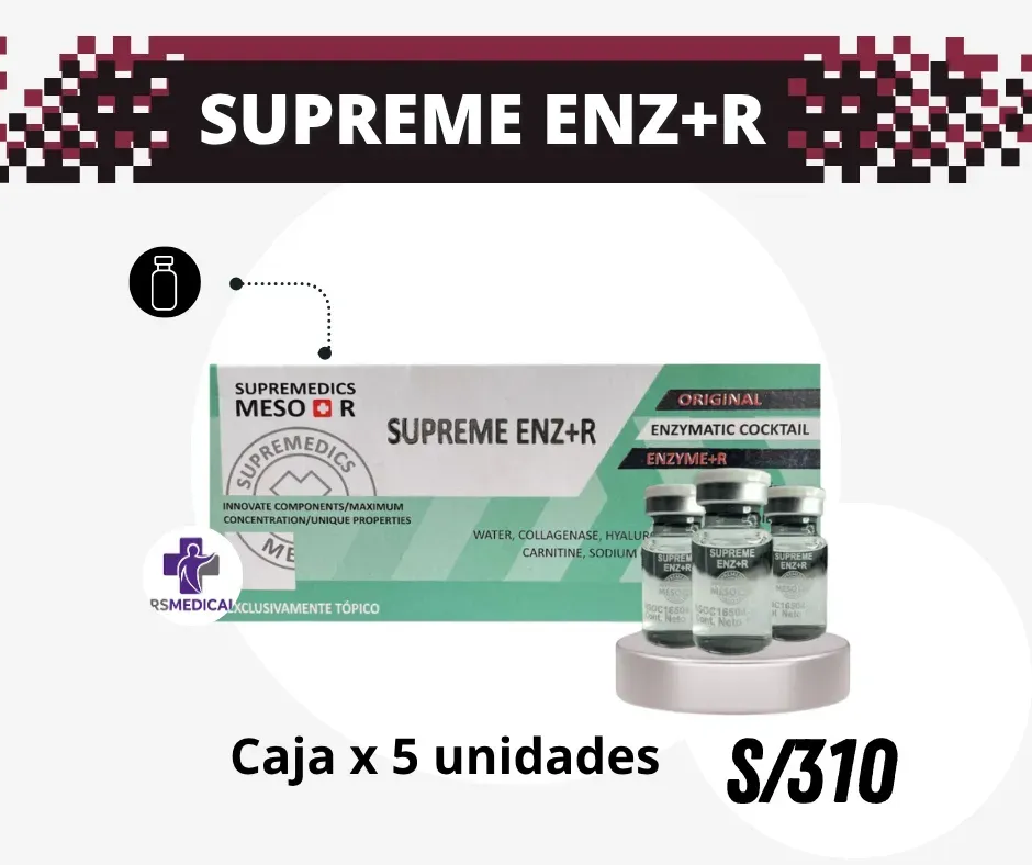 Supreme ENZ+R es un tratamiento estético con enzimas de segunda generación (lipasa, colagenasa y hialuronidasa) que ayuda a reducir grasa localizada, celulitis, estrías y cicatrices, mejorando la firmeza de la piel.